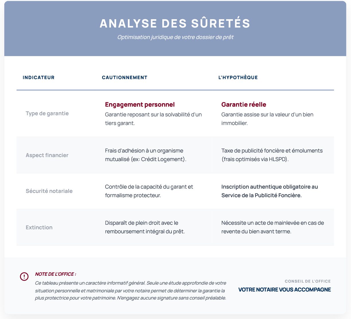 Le choix entre ces deux garanties dépend souvent de la nature de l’opération projetée et de votre patrimoine.