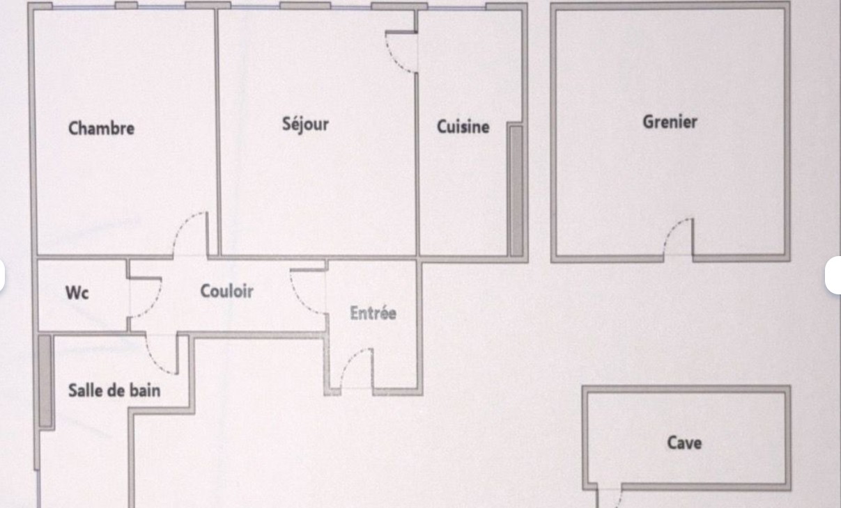 Entrée. Cuisine indépendante équipée. Salon séjour lumineux. 2 chambres. Salle d’eau. Cave