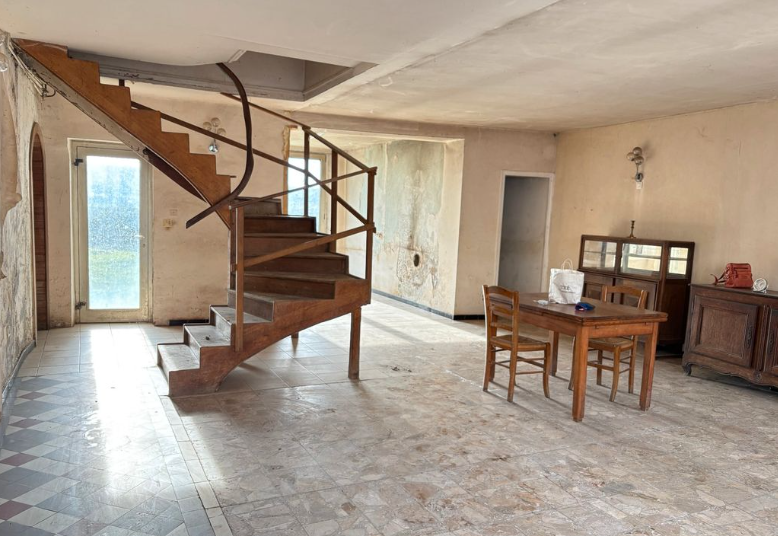 Cette maison mitoyenne des deux côtés (environ 80 métres carrées), à rénover, offre de beaux volumes et des atouts pratiques.
